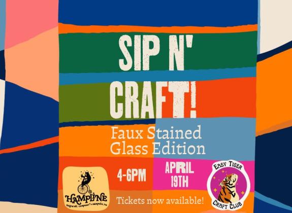 Come on out for our third Sip n' Craft with Easy Tiger Craft Club and this time we're making faux stained glass! Choose from a lighter, sardines tin, tomatoes vine, and cowgirl boots, lipstick, and 901 designs. They'll bring the materials and knowledge to lead you in a class where you'll leave with a unique craft, we'll provide the drinks and pizza! Tickets available at the link below, hope to see you there!