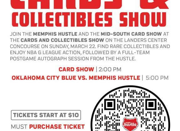 Join the Mid-South Card Show as they host a Cards and Collectibles Show on the Landers Center Concourse during the Memphis Hustle vs Oklahoma City Blue on Sunday, March 22nd.