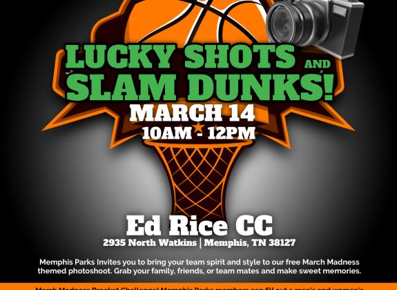 Our MPsnaps Monthly series continues with Lucky Shots and Slam Dunks on Saturday, March 14, from 10 a.m.- 12 p.m. at Ed Rice Community Center! Memphis Parks invites you to bring your team spirit and style to our free March Madness–themed photo shoot. Grab your family, friends, or teammates and make sweet memories.