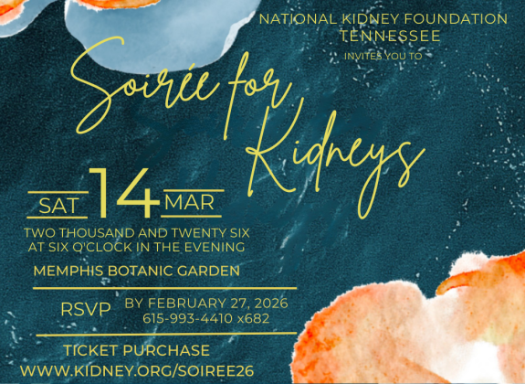The National Kidney Foundation Serving Tennessee’s Soirée for Kidneys will spotlight three powerful local stories, including a transplant recipient who has lived 47 years with the same kidney, a respected Memphis leader who faced her own transplant journey, and a father who survived years of dialysis before receiving a life-saving transplant.