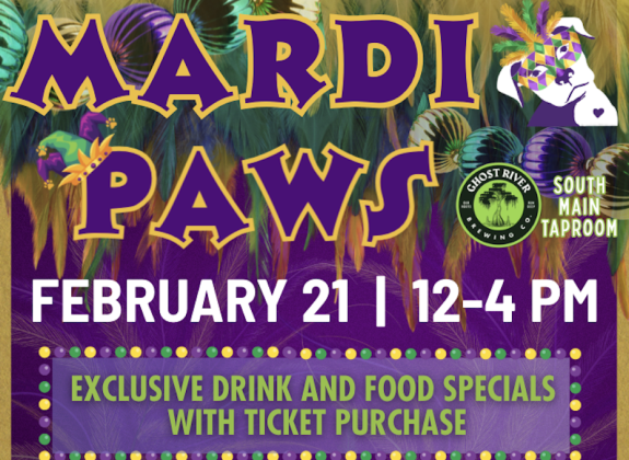 Get ready to let the good times roll at Mardi Paws, a fun filled afternoon benefiting Streetdog Foundation. Join us on February 21 from 12 to 4 at Ghost River South Main for music, drinks, food, and plenty of pups in festive flair.